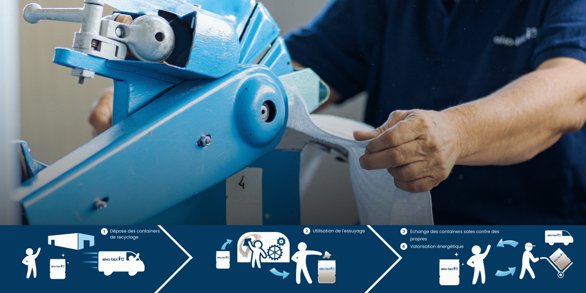 Eko-Tex assure la fourniture, la reprise et la revalorisation de vos lavettes et absorbants sans facturation de la perte ni location longue durée.